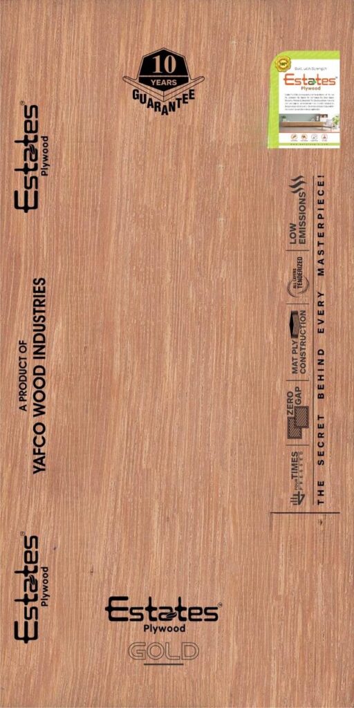 Estates Gold (BWR Grade – IS:303) is designed for dependable strength, refined finish, and consistent interior performance. Manufactured using selected hardwood veneers and advanced bonding technology, each sheet maintains uniform thickness, structural stability, and smooth surface quality suitable for laminates and decorative applications.